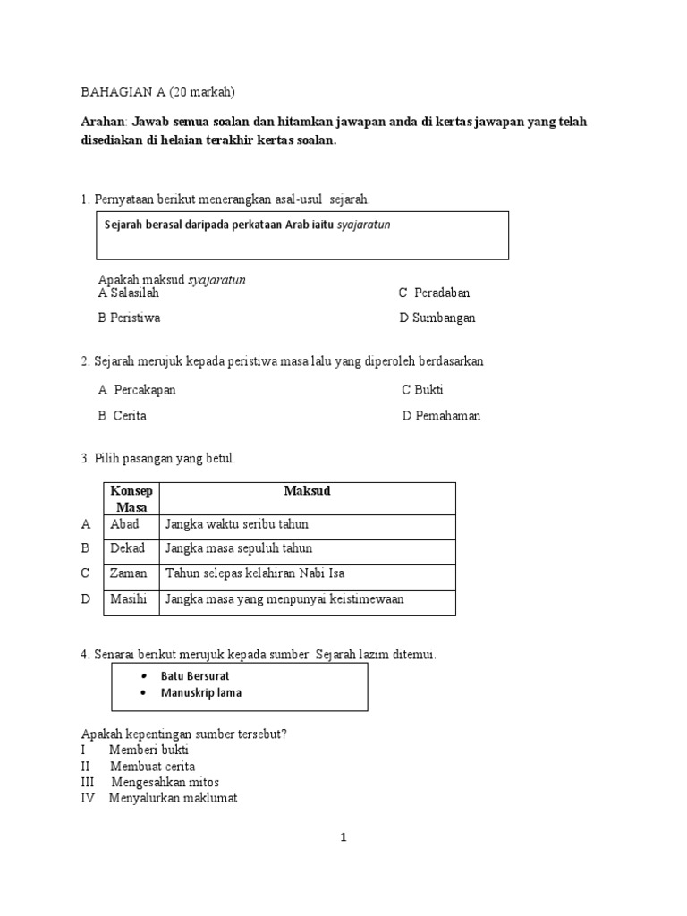 CONTOH SOALAN DAN JAWAPAN KABT TINGKATAN 1 BAB 1 Mengenali Sejarah 1. Sebahagian besar bumi khususnya di bahagian kutub utara dan kutub selatan diliputi oleh air batu. Bilangan item yang dibina pada tajuk ini hanya 1 soalan objektif.